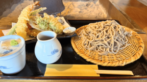 囲炉裏のある空間でいただくお蕎麦は格別。天ぷらもサクサクで美味しいと評判です。少し歩きますが、その価値がある名店です。