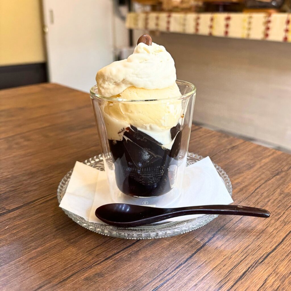 コーヒーゼリーは水出しコーヒーで作られたもので、コーヒーの香りとすっきりとした味わいが特徴的です。