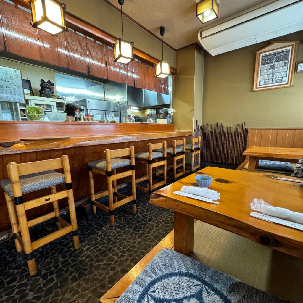 店内は、カウンター席とテーブル席のほか、靴を脱いで上がれる「お座敷席(小上がり)」があります。
